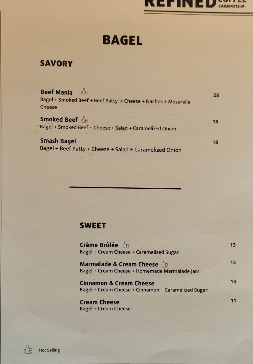 Bagels take center stage with offerings like the Cream Cheese Bagel and Cinnamon & Cream Cheese Bagel, both rich and delightful, making for a perfect pairing with their aromatic coffee. If you're looking for something more substantial, the REFINED Salad with smoked beef or grilled chicken comes highly recommended, showcasing the café's commitment to freshness and quality.